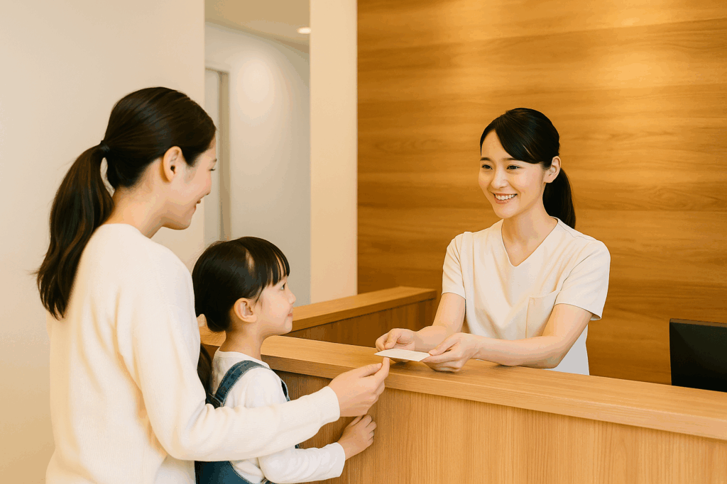 受付スタッフが、保険証や問診票のご案内、次回予約の調整などを丁寧にサポート。